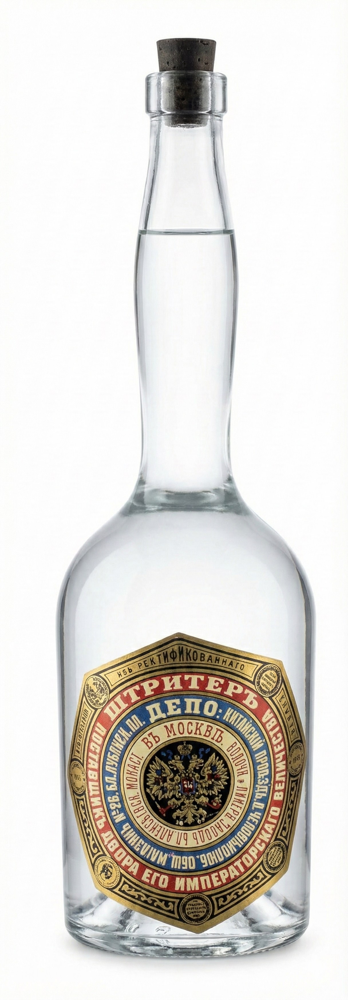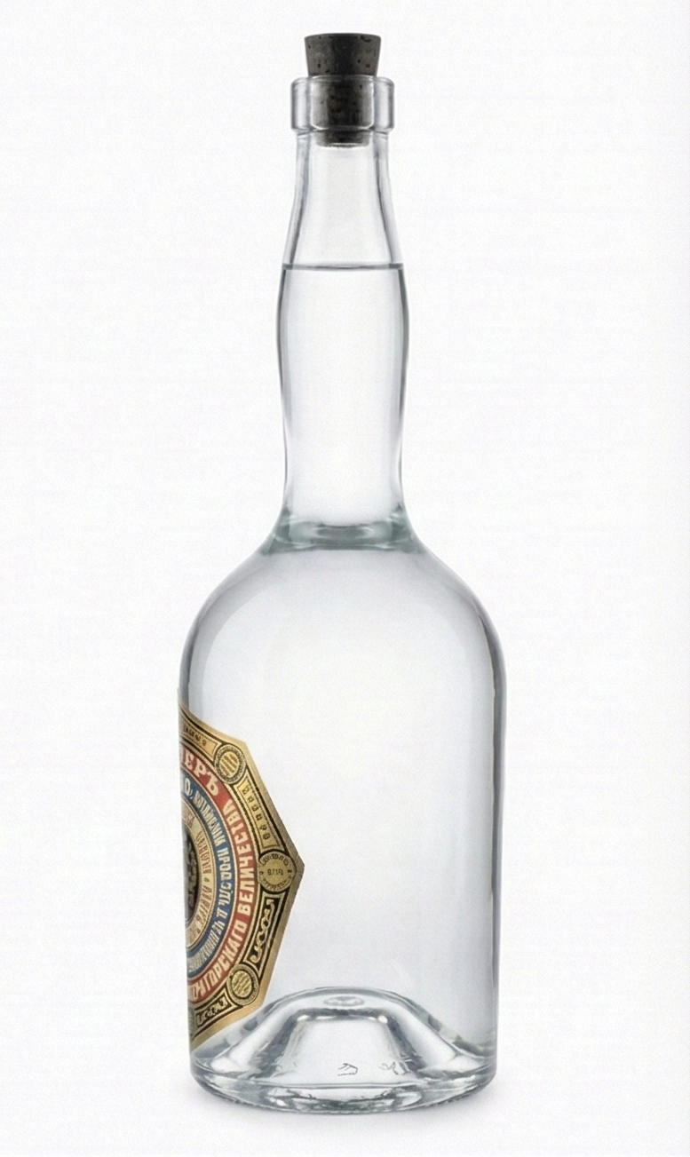 Premium vodka distilled from grain alcohol and ultra-pure water. A testament to Russian distillation excellence.